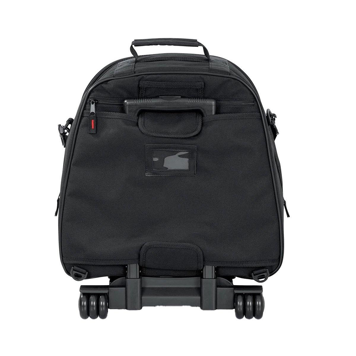 The Gator Cases Rolling Backpack is designed with pockets specifically made to protect and carry a snare drum, with practice pad, a stand and sticks. It also has an exterior pocket for accessories. The bag is made from rugged 600 denier nylon with 10mm nylon interior padding. The bag is transported by a nylon web carry handle, adjustable shoulder and backpack straps, a removable, retractable tow handle and wheels.
