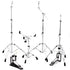 - Includes a snare stand, hi-hat stand, boom cymbal stand, straight cymbal stand, and dual-chain kick pedal